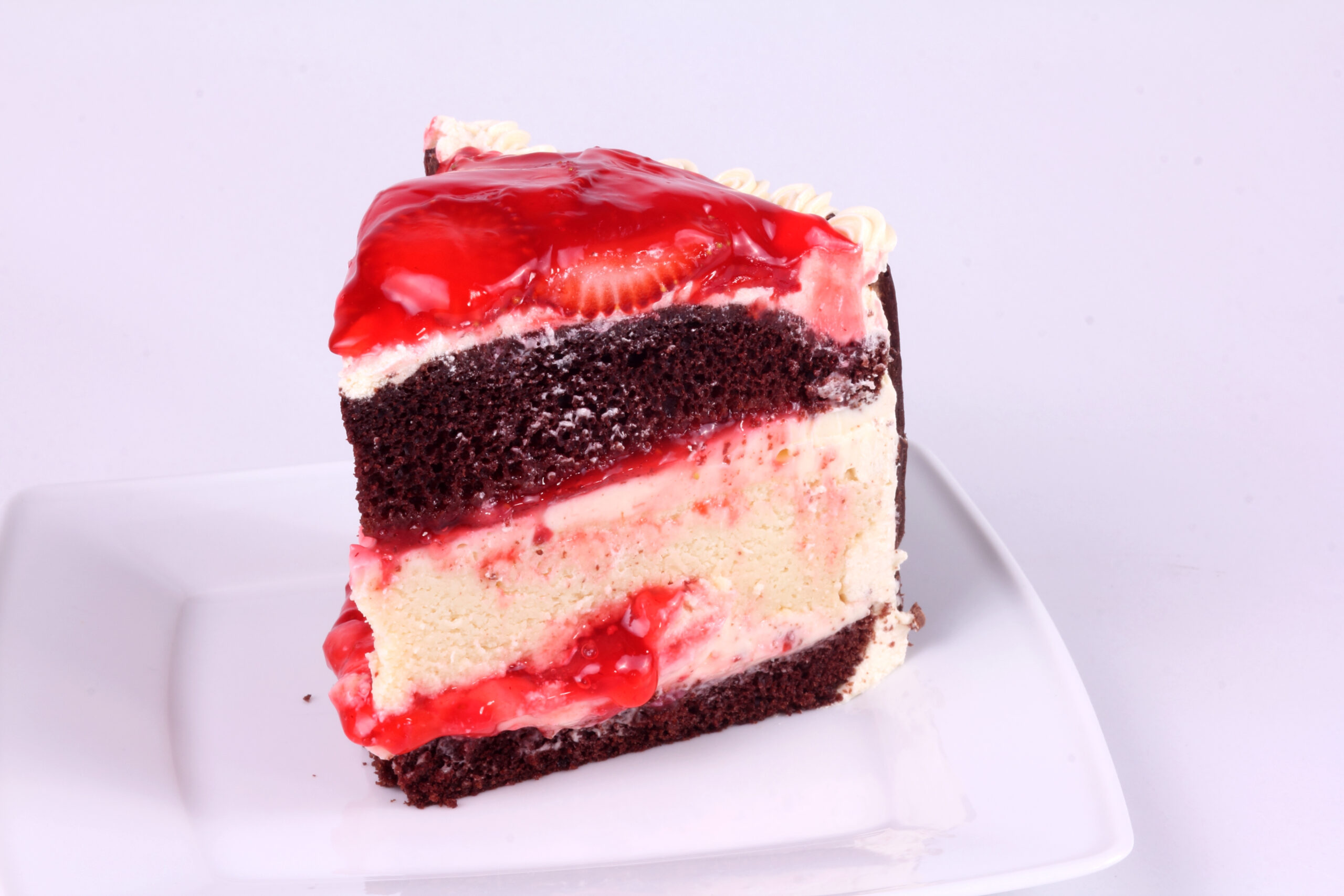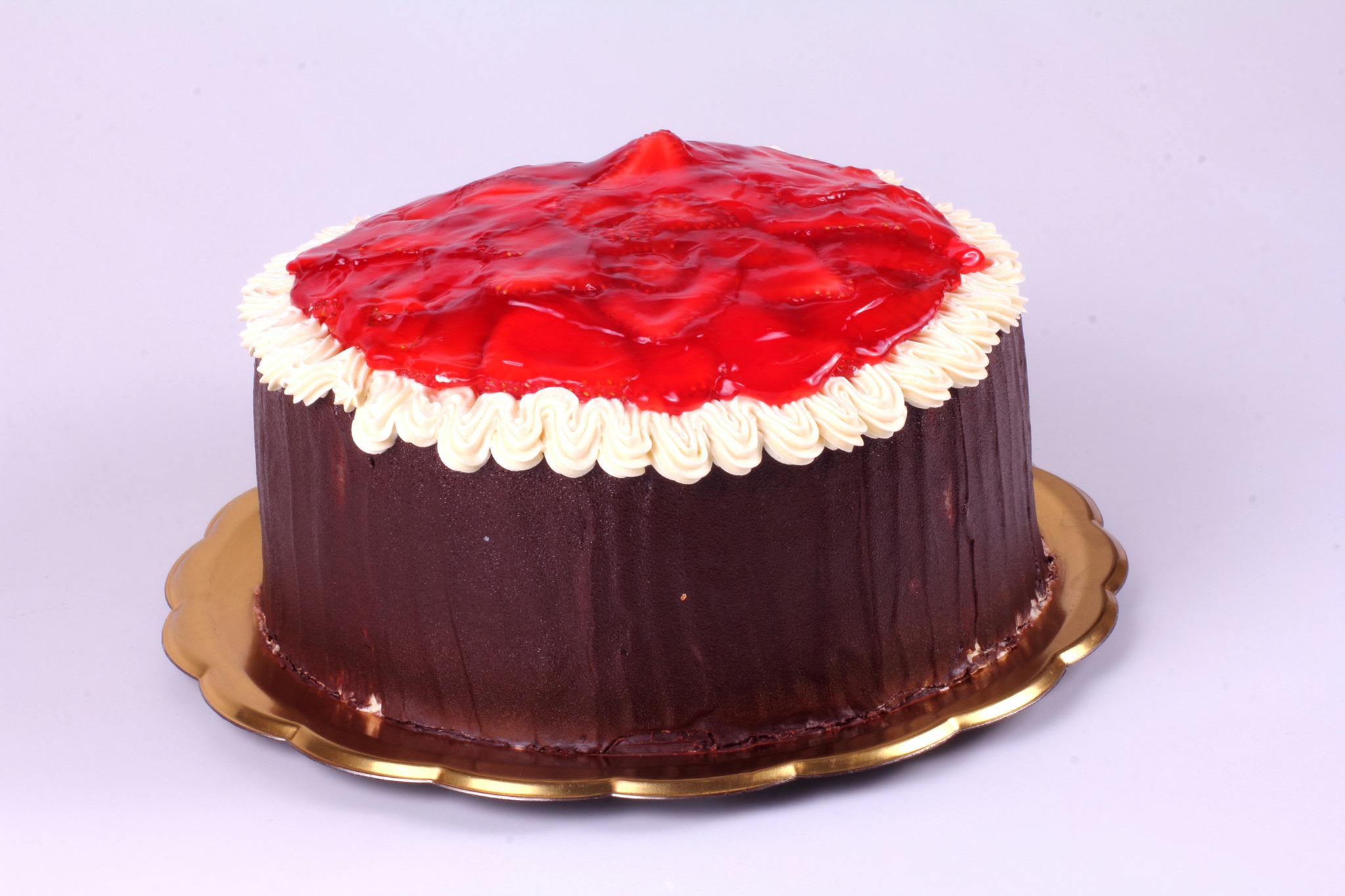 Pan chocolate, cheesecake cubierto chocolate y fresa