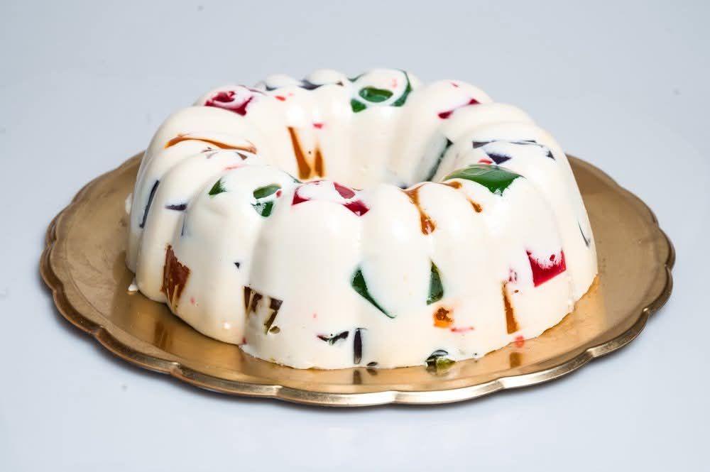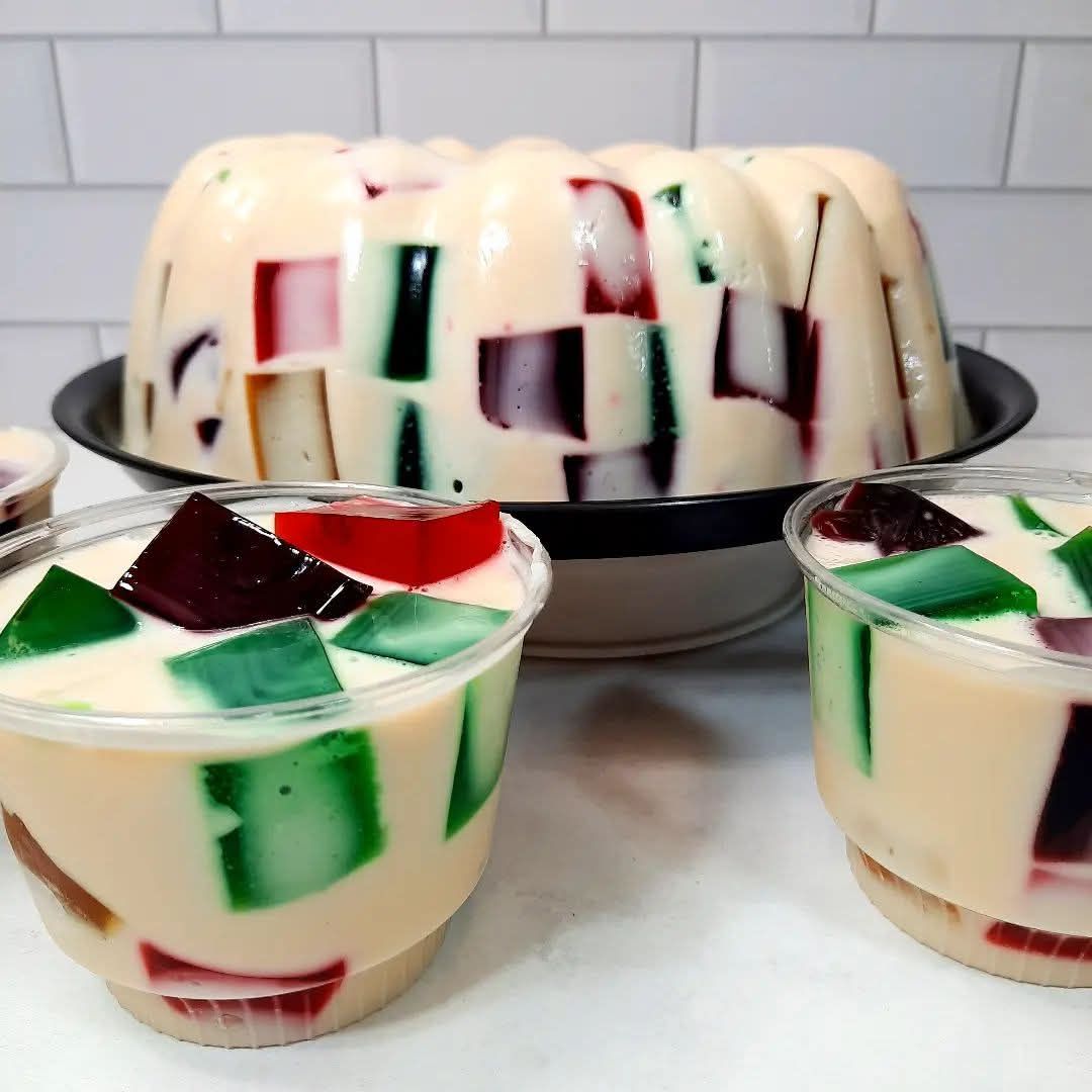 Cubitos de gelatina de sabores en una base cremosa irresistible